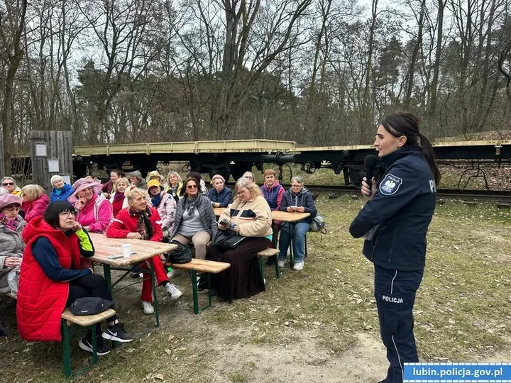 We wtorek 24 marca 2026 roku policjantki z Komendy Powiatowej Policji w Lubinie prowadziły w Parku Leśnym spotkanie poświęcone bezpieczeństwu seniorów. Rozmowa dotyczyła przede wszystkim zagrożeń, na które starsze osoby trafiają najczęściej - od prób wyłudzeń po ryzykowne sytuacje w sieci i na ulicy.