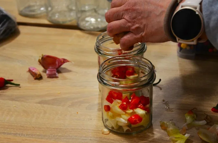Druga część zajęć była już całkiem praktyczna. Uczestnicy samodzielnie przygotowywali oksymel, poznając kolejność działań i sposób jego wykorzystania. To właśnie ten fragment warsztatów najlepiej pokazał, że o zdrowiu można rozmawiać bez dystansu – przy stole, w pracy własnych rąk i z pytaniami, które rodzą się naturalnie w trakcie działania.